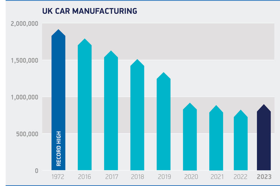 Despite the surprise, the SMMT predicts fewer cars will be produced in 2024, although a push from commercial vehicle manufacturers, such as Vauxhall and its now-upgraded Ellesmere Port factory, will grow overall production to 1.04 million units.