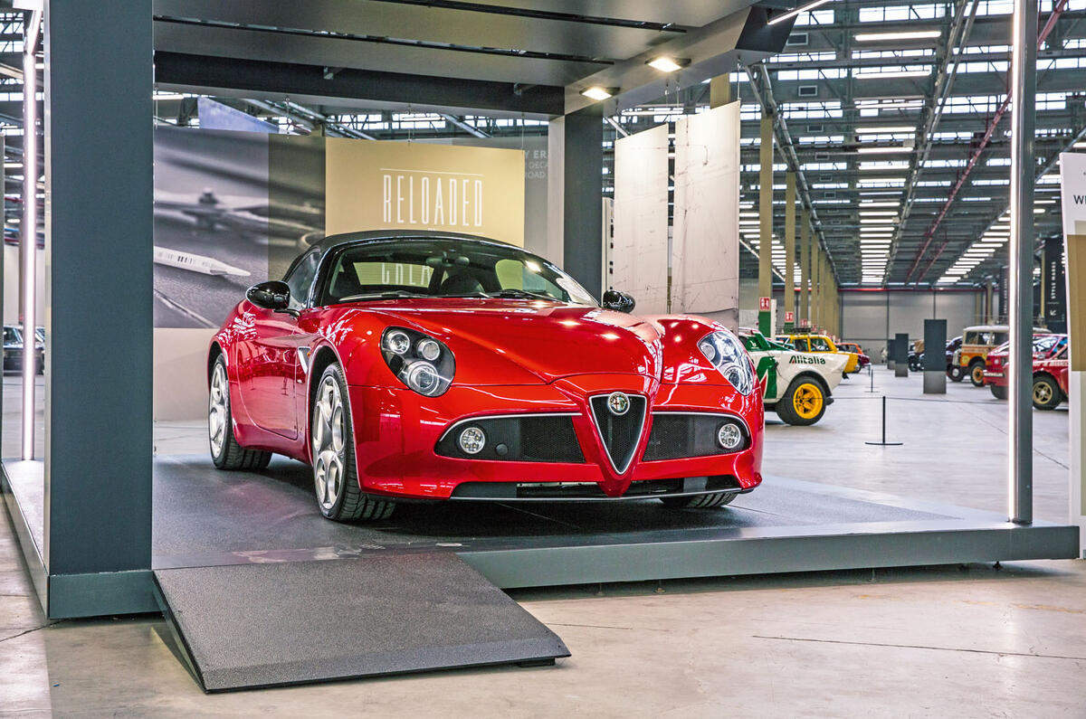 2009 Alfa Romeo 8C Spider: This one’s for sale, with no refurbishment required, having covered a handful of kilometres during its life within the company. Checked over by Heritage and issued with a certificate of authenticity, it is in effect a new car. The 444bhp 8C was a limited-edition model appearing first as the Competizione coupé and then a Spider. Maserati built 500 of each for Alfa.