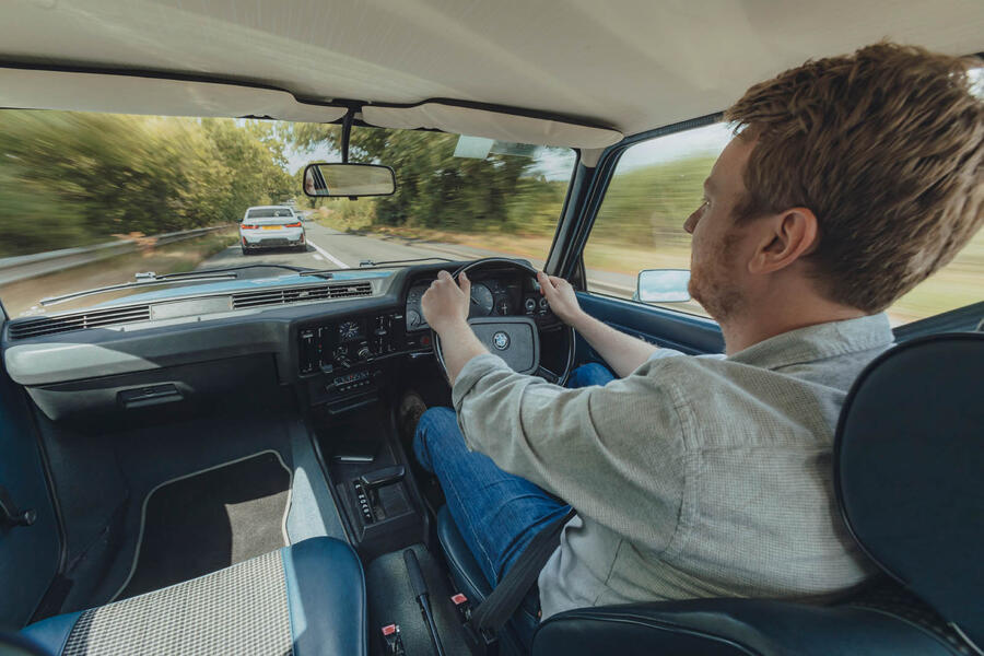 The handling is genuinely interesting, though. As we know, the mechanicals of the 3 Series would iterate rapidly in the years following 1975, but even this early car has traces of the good stuff. For one thing, while the suspension is soft, the cornering balance is neutral. What's more, while the trailing-arm rear axle doesn't always feel exceptionally well located, trimming the throttle mid-corner generates a controlled flicker of rotation that is primordial M3-type behaviour. It's an old softy, but one that is mischievous and oh so easy to run along with.