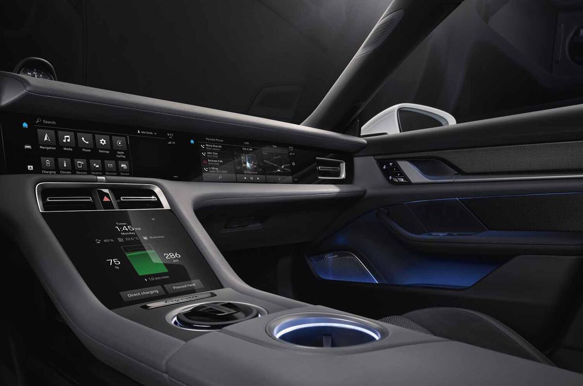 Porsche has previously revealed a number of details about the Taycan, including images of the car's interior, which takes the brand's design and technology to a new level. It's based around up to four digital displays, including a curved, free-standing 16.8in configurable driver's display - Porsche's first fully digital instrument binnacle.