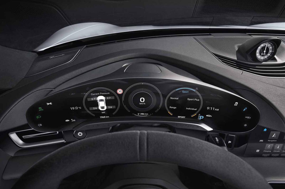 Despite the distinctly high-tech approach, classic Porsche features such as the dash-top analogue clock still feature.