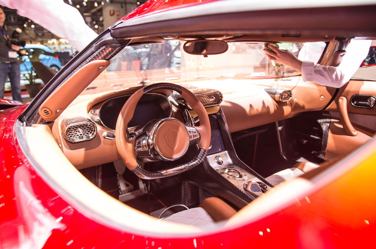 Koenigsegg says the interior of the Regera has been designed with “optimum comfort and functionality” in mind. The rear and side-facing cameras can be optioned together with a forward-facing camera to produce a bird’s eye view of the Regera. Apple CarPlay features as standard, and the Regera offers a WiFi hotspot and inductive charging for mobile phones.