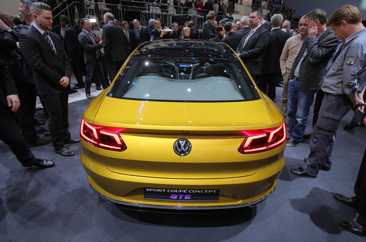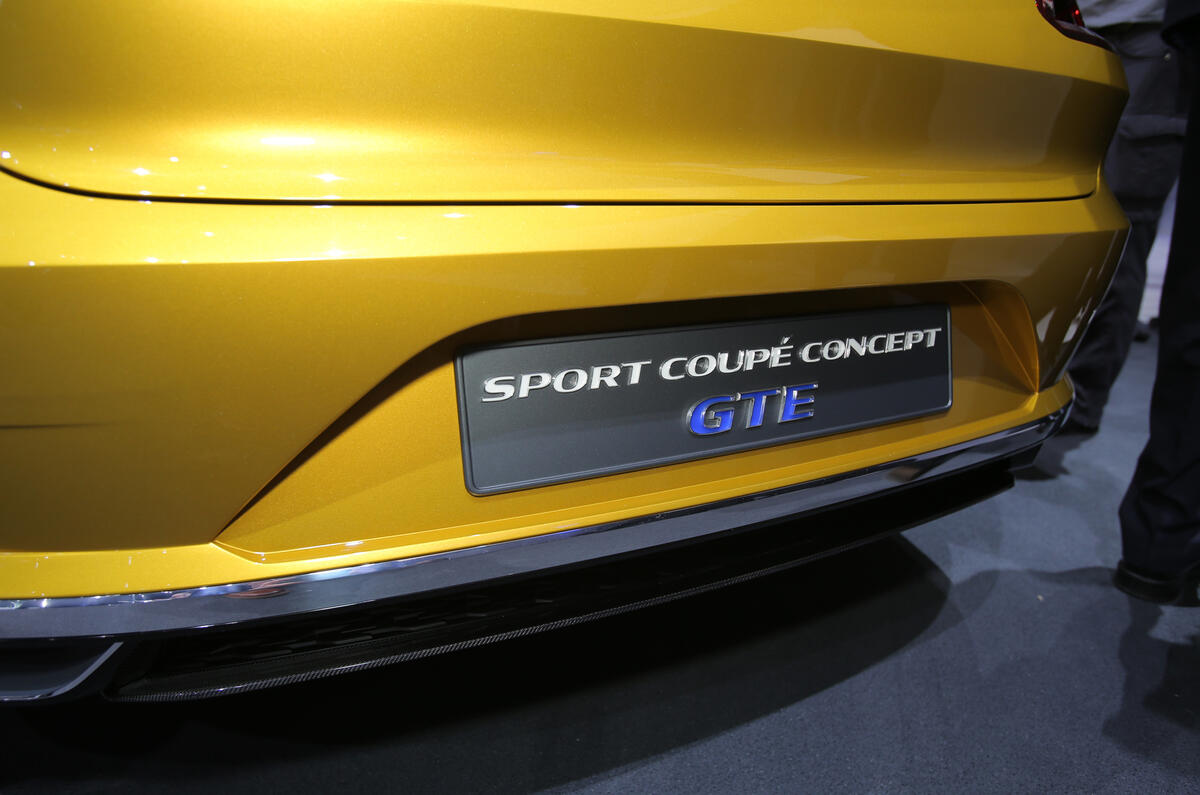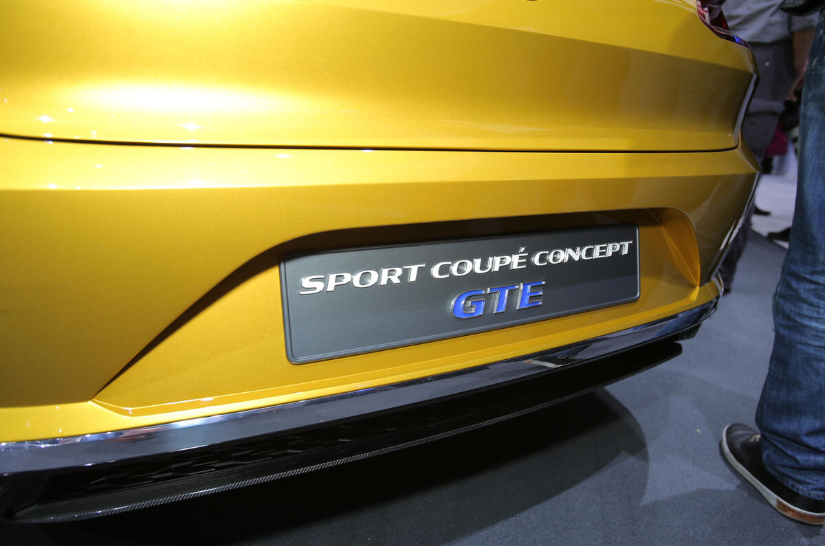 The Sport Coupé GTE also showcases a plug-in hybrid system that VW is investigating for a range of future models. The petrol-electric system is based around a turbocharged 3.0-litre V6 petrol engine that produces 295bhp in the Sport Coupé GTE. It operates in combination with two electric motors — one in the front of the gearbox housing that delivers 54bhp and another at the rear providing 114bhp.