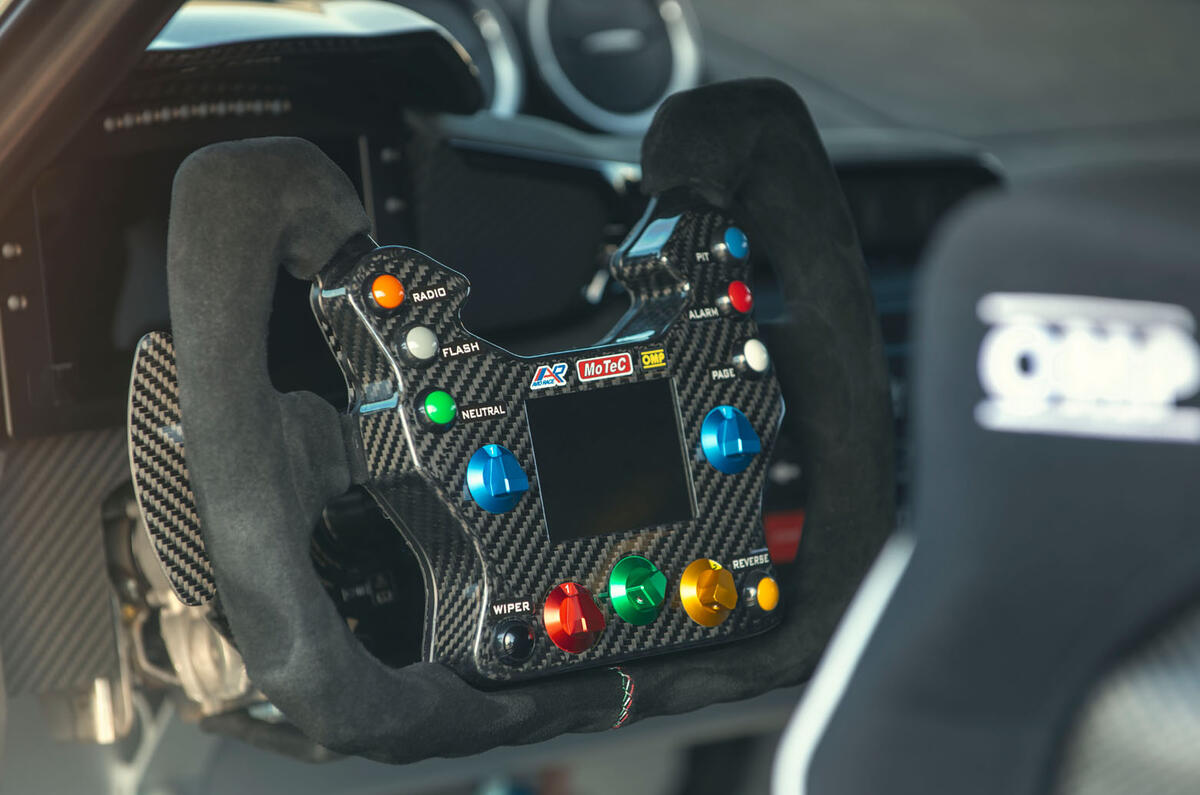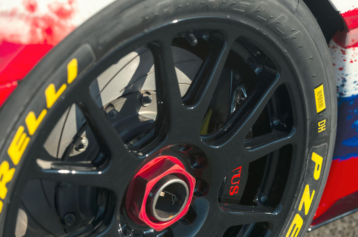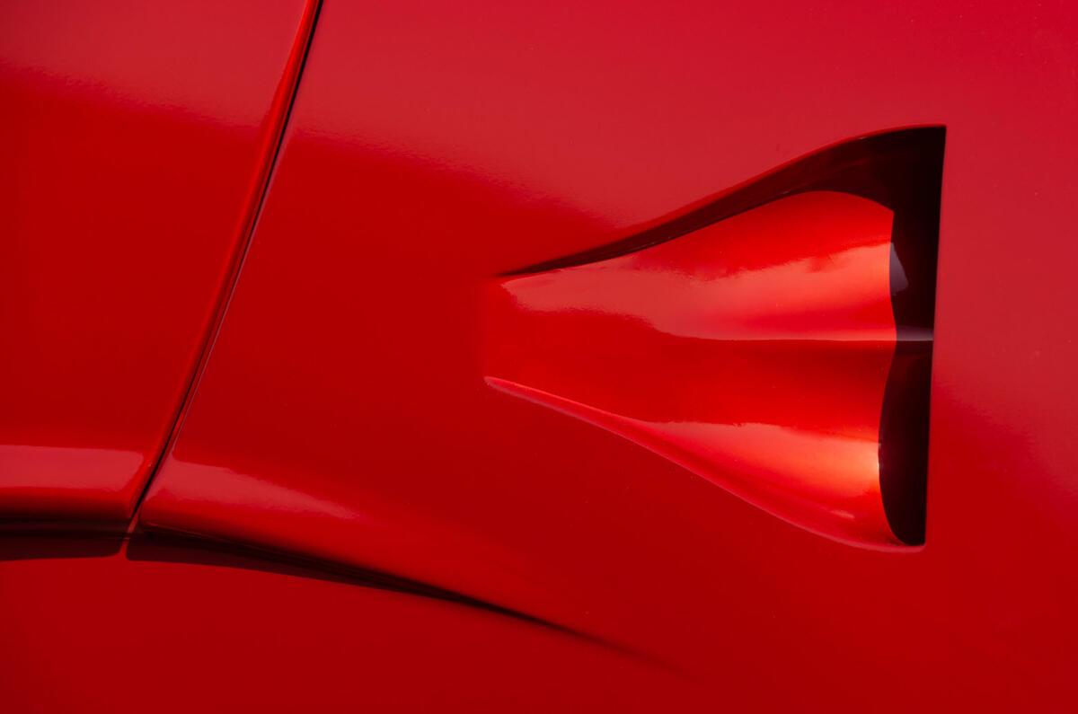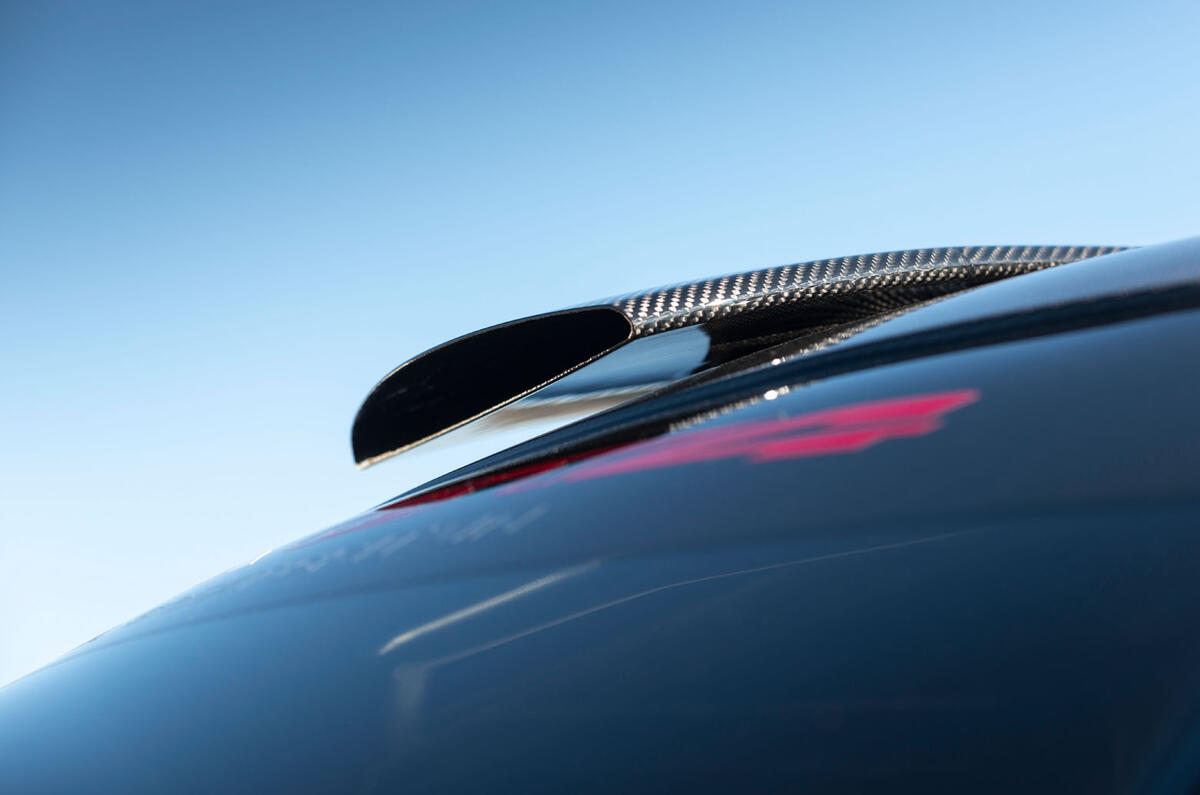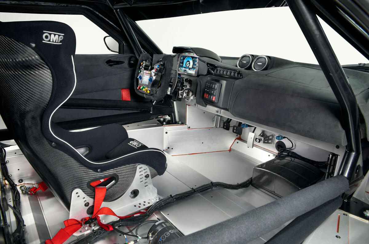 Further weight-saving measures include plexiglass for the side windows, a carbonfibre bootlid and 12-spoke aluminium wheels.
