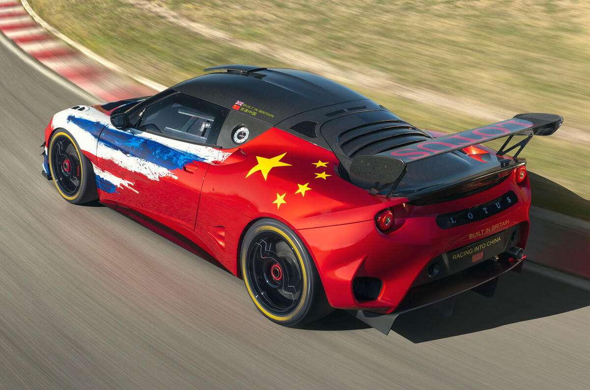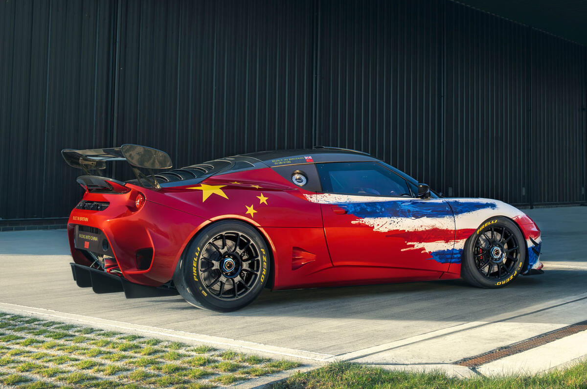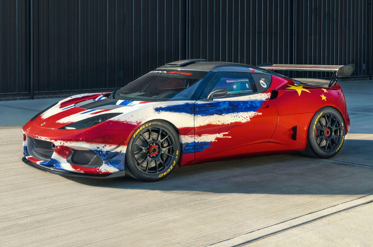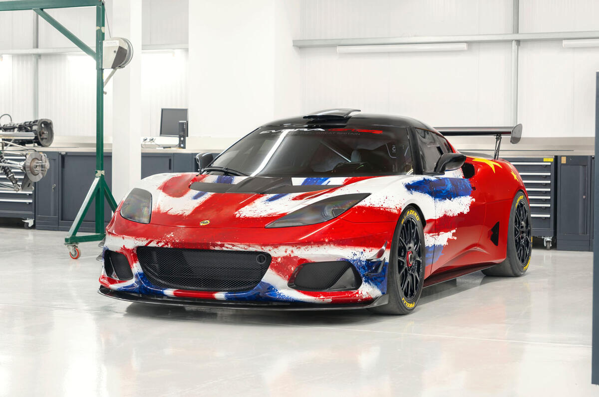 A decal on the side of the Evora displays the Goodwood circuit lap record achieved by Jim Clark in 1965 - 1m20.4sec. The Type 25 racer in which he achieved this time is also on display.