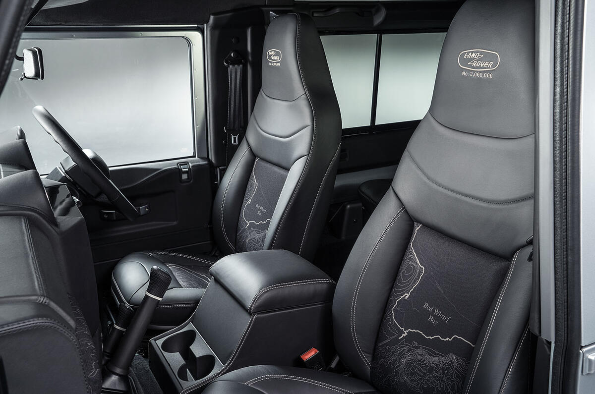The bespoke Defender celebrates 67 years of Land Rover production, and features special elements including a map of Red Wharf Bay - where the design for the first Land Rover was drawn in the sand - engraved into its front fender, a ‘no. 2,000,000’ badge at the rear and inside, leather seats with special graphics and badging, and an aluminium plaque signed by everyone who helped to build the car.