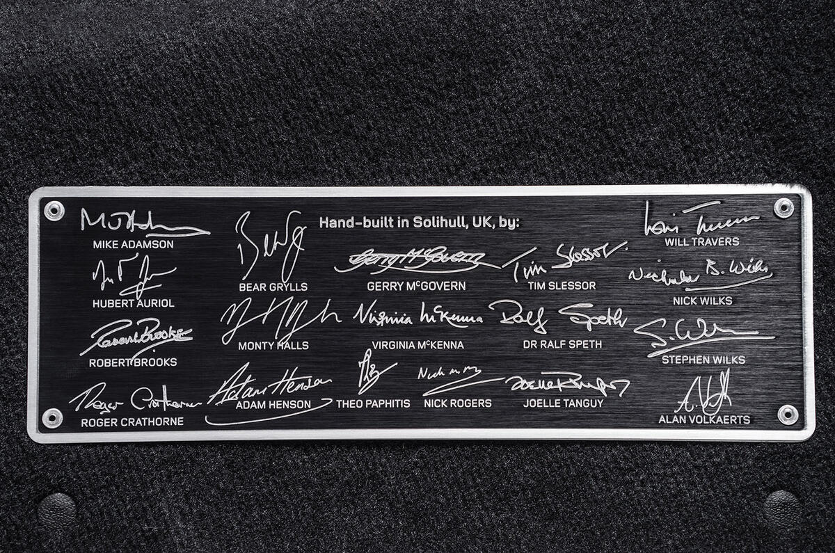 Celebrating the car’s build, Land Rover invited guests and celebrities to help put the Defender together at its Solihull plant. Those who helped to build the car include adventurer Bear Grylls, JLR boss Dr Ralf Speth, the sons of Land Rover founders Maurice and Spencer Wilks, and Autocar’s editor-in-chief Steve Cropley.