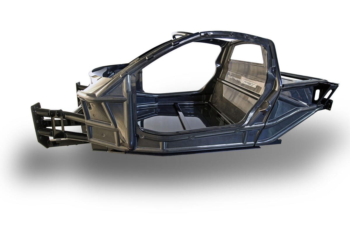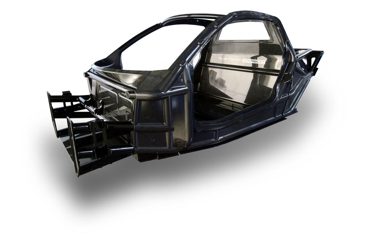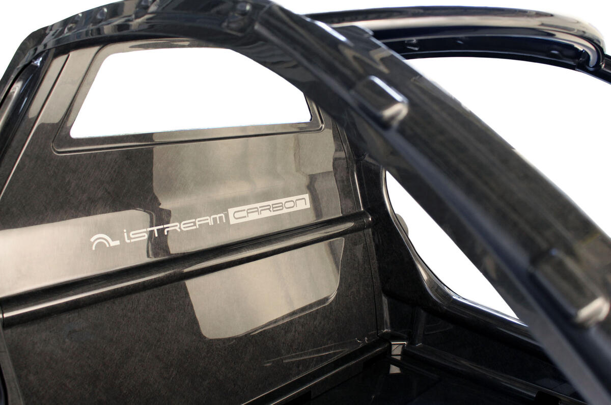 The system is derived from Gordon Murray Design’s iStream manufacturing process, but replaces the glassfibre content with carbonfibre. It has been developed in conjunction with Japanese firm Toray, for whom Murray designed the Teewave sports car in 2011, and sandwiches a honeycomb paper core with two carbonfibre skins.