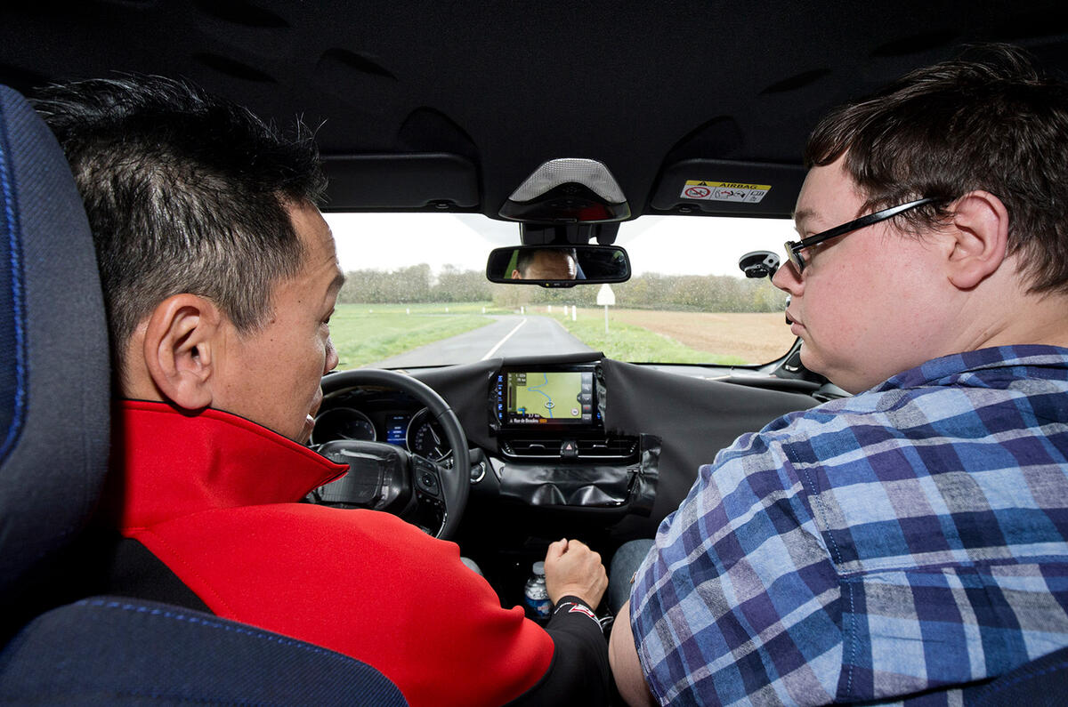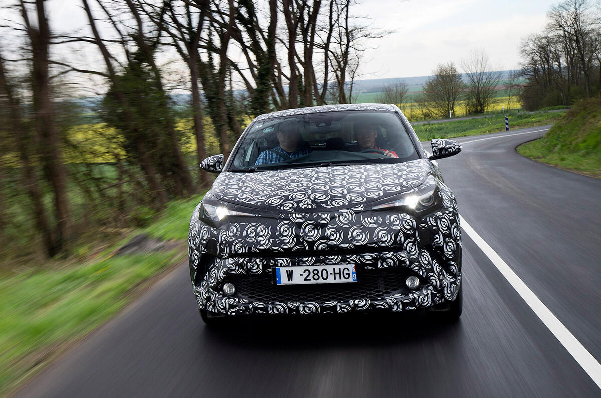 The C-HR's lead engineer, Hiro Koba, sets off in this manual, two-wheel drive 1.2-litre petrol model. This model is expected to be the second most popular C-HR after the 1.8-litre hybrid. A larger 2.0-litre version will be offered in markets like Russia, where displacement and overall reliability are prized over fuel economy, but Toyota isn’t bringing that engine to the UK because of its high CO2 emissions.