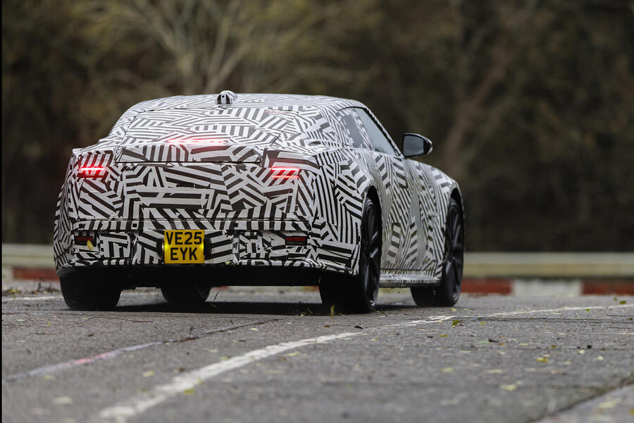 Now came a chance to ride on JLR's Gaydon test track in a new GT prototype, disguised inside and out but very close in dynamic performance to the production cars due to be offered for sale in summer next year and on owners' driveways in early 2027.