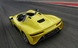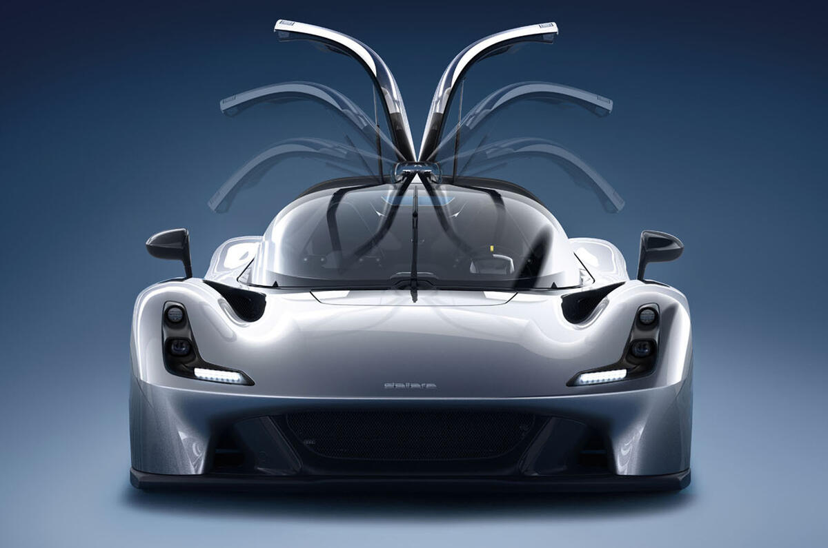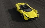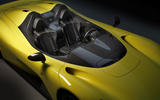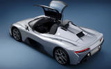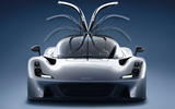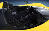 Although the most basic ‘barchetta’ roadster uses a minimal aero screen, a removable plastiglass windscreen with a carbonfibre frame will be offered as a €16,600 option. Buyers can further specify a Targa-style frame roof for €7700 and finally two top-hinged see-through canopy ‘doors’ to turn the car into a coupé for €7300. (All prices are before tax.)