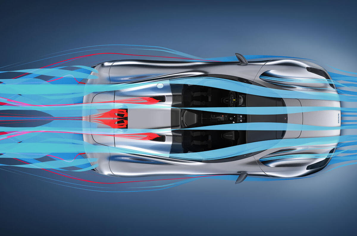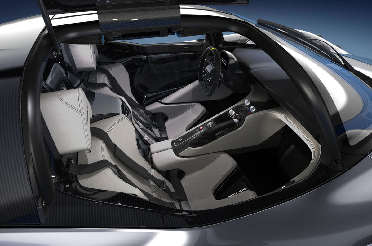 The lack of conventional doors means access involves stepping into the cabin but also allows enclosed air channels to direct flow from the nose to the engine and intercooler without side intakes. The floor is almost entirely flat, with sizeable diffusers front and rear.