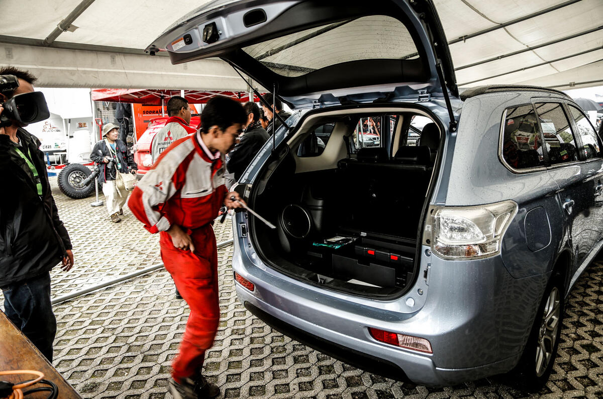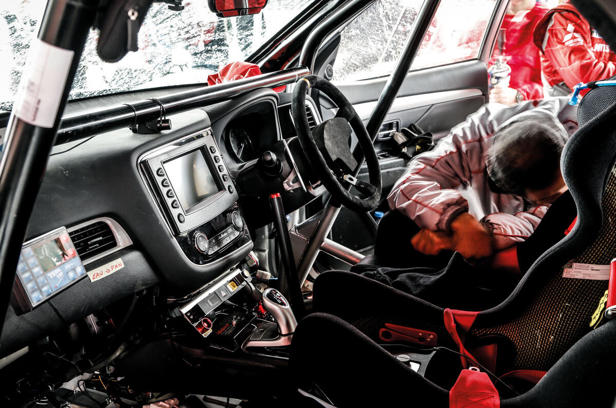 That man is Hiroshi Masuoka and his car is a Mitsubishi Outlander PHEV. Yes, the Japanese company is rallying a plug-in hybrid.