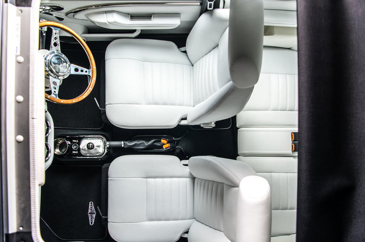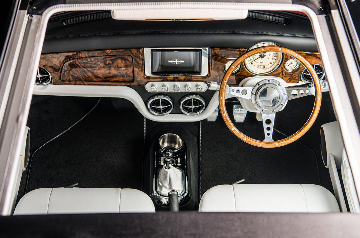 Inside, the one-off car receives a wood-panelled dashboard, wood-rimmed steering wheel and white leather upholstery. The standard David Brown upgrades – illuminated Smiths dials, 7in infotainment touchscreen, smartphone compatibility and six-speaker sound system – also feature.