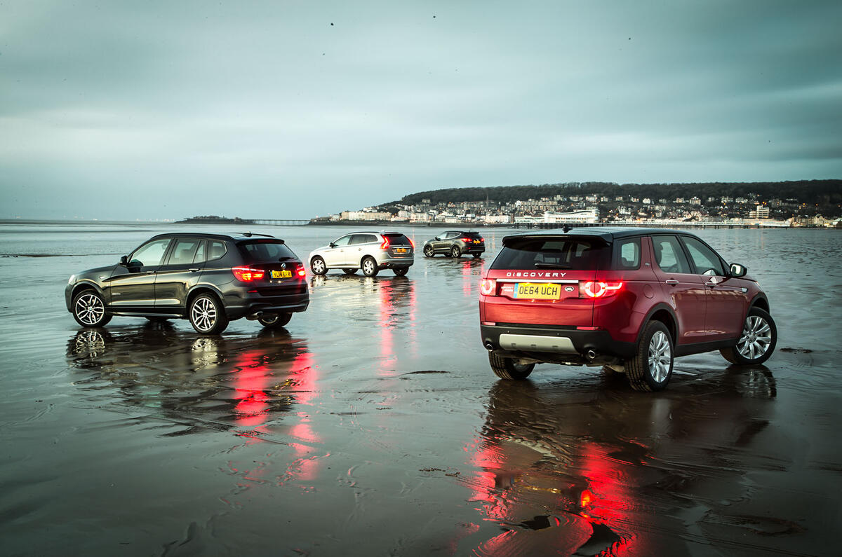 First to join the Discovery Sport just outside Swindon, prior to a cross-country trek that will put several hundred miles on the odometers of all here, is the Volvo XC60. It packs Volvo’s frugal new D4 engine, which isn’t offered with four-wheel drive yet, and is a quietly appealing car. It’s also one that, in most cases, wouldn’t appear out of place parked nose to nose with the new Land Rover in the high-end residential areas frequently occupied by these cars.