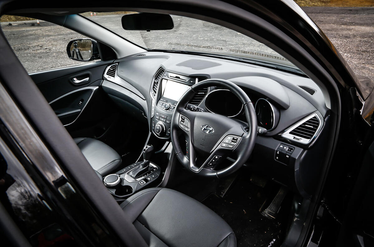 Next into the starting blocks is the Hyundai Santa Fe. Like the Land Rover, it sports a diesel engine, four-wheel drive and seven seats. It may not have the badge or the off-road credentials, but what it majors on is value for money and ease of use.