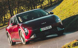 The EV's driver’s seat is comfortable and supportive, and materially interesting enough even in the cloth trim of Air specification. But the first disappointment is that it doesn’t feel particularly low. When you’re sat in it, you’re still aware of the presence of the battery pack displacing your backside upwards by three or four inches.
