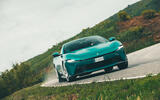 At the same time, the engine is still this car’s biggest letdown. It has all the power and response you could want and revs freely to its 7600rpm redline, but unless you keep it above 5000rpm, it doesn’t sound particularly good. Its flat-plane crank makes it sound like two four-cylinders in a way that the Mercedes-AMG-sourced 4.0-litre V8 in the Vantage doesn’t. Between 4000rpm and 5000rpm on part throttle, there’s a particularly unpleasant chainy resonance, so a spirited drive becomes a game of keeping it out of that range.
