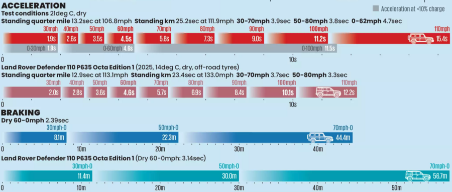 Elsewhere, prod the large central dashboard button and the display will shortcut to the car’s off-road gauges, which include an inclinometer, real-time axle articulation and the division of drive between all four wheels.