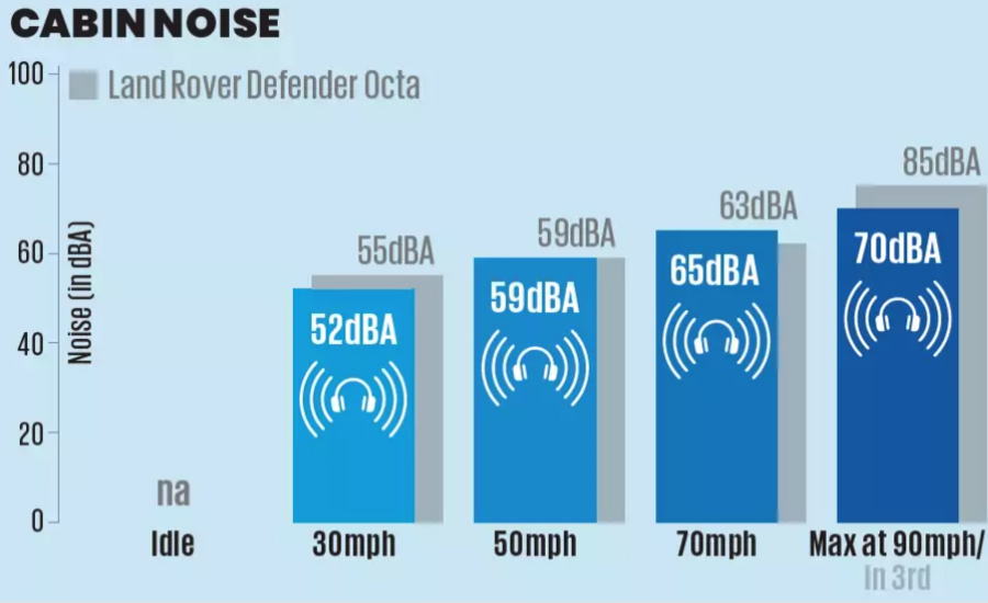 The door mirrors are sculpted for the wind, so smaller than you would find on an Ineos Grenadier or a Land Rover Defender, while the interior mirror view suffers from quite a lot of cable box obstruction. There’s no option of a digital mirror either, as you will find on the Land Rover Defender Octa.